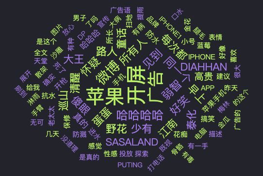 根据时趣洞察引擎对「苹果开屏广告」的舆情内容监控分析,也可以看到「高频词云」中,不乏“哈哈哈”、“傻眼”、“少有”、“搞笑”、“有毒”等带有调侃意味的中性词汇。