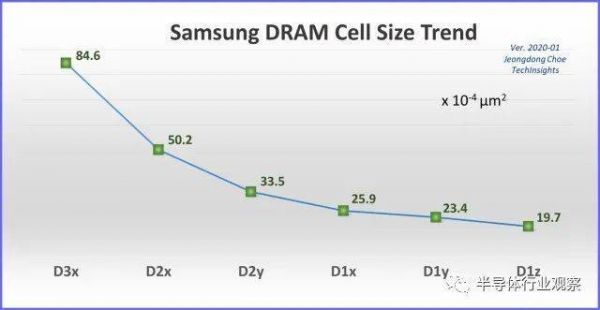 三星 DRAM 单元尺寸趋势,D3x到 D1z(图源:TechInsights)