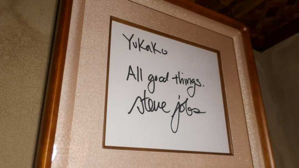 乔布斯的亲笔签名现在装饰在Sushiiwa的墙上。附有一句话:”所有美好的事物“(All good things),这是 ”一切美好的事物都必将逝去 “(All good things must come to an end.)这句话的简称。