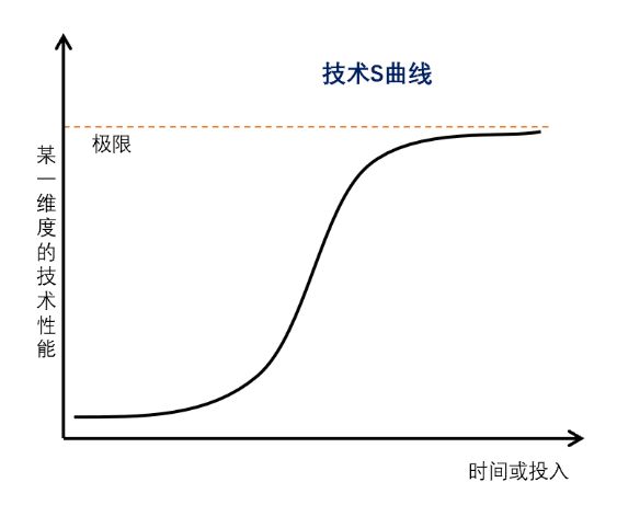 这样,借助技术S曲线(通常,随着技术的逐渐成熟,在时间或投入相同的情况下,产品的性能改进量并不相同,存在着小、大、小,最后接近极限的过程),人们就可以清晰地描述新技术条件下产业生态竞争与演进的一般规律。