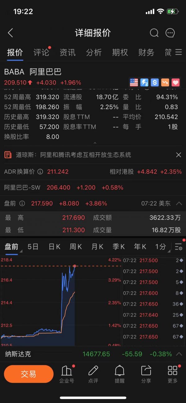 受此消息影响,阿里股价盘前大涨。