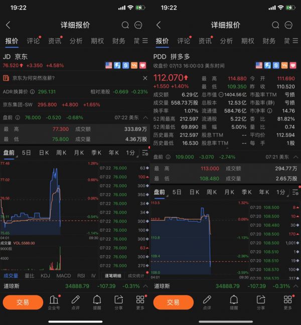 不过,两个巨头如果真的“和解”,当初因为巨头大战而获益的相关企业,恐怕将是几家欢喜几家愁。资本市场最是立竿见影,受益于腾讯系流量的平台如京东、拼多多股价盘前均已出现下跌。