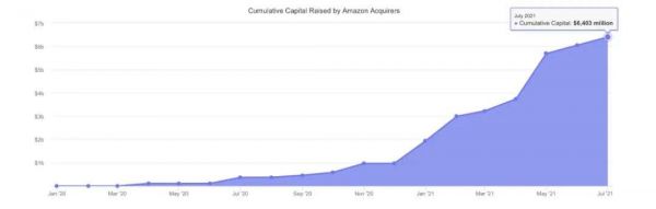 2021年7月,亚马逊第三方收购公司募资总额超过60亿美元