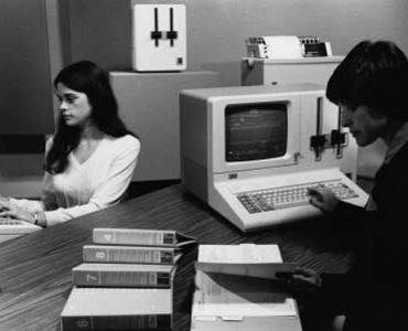 一张来自 IBM 的档案照片,上面展示的是System/23 Datamaster,那些人大概是一些大学生。