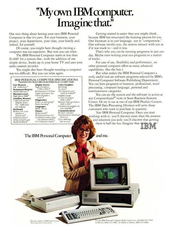 IBM PC 5150的平面广告。那时候的广告跟现在很不一样...