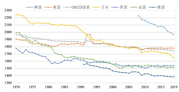 从历史数据看,人们的工作时长呈下降趋势。1870年,法国、德国、美国、瑞典、比利时等早期工业化经济体的年平均工作时长超过3000小时,作为工业革命发源地的英国也有2755小时(来源:Huberman & Minns,2007)。
