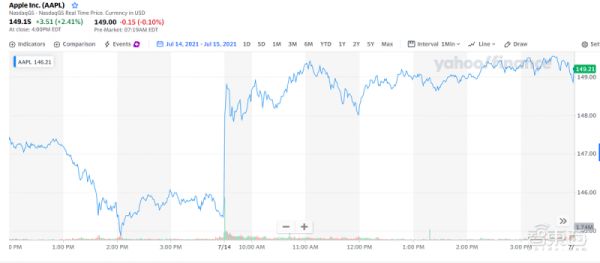 ▲苹果7月14日至7月15日的股价变化图