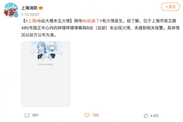 “B站崩了”冲上热搜,回应称部分服务器机房发生故障