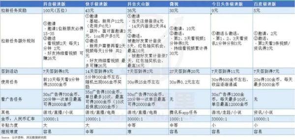 事实上,结合我们对市面其他种极速版App活动补贴规则的调研,视频平台极速版的补贴力度,的确显著高于其他平台——拉新任务补贴力度最大,而且提现方式也较简单,对于空闲多、熟人多的下沉市场用户来说,赚个零花钱没什么难度。