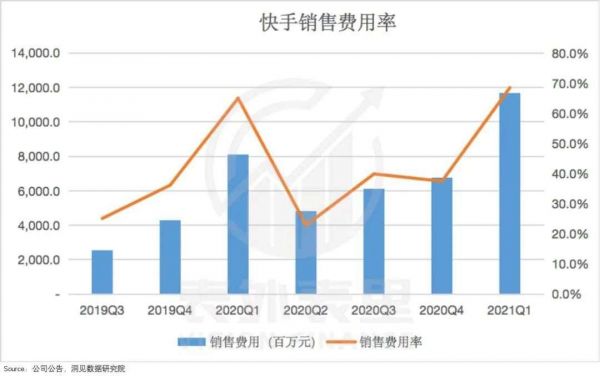 同样的问题也存在于快手身上——据快手财报披露:2021Q1销售费用的增加,就主要用于快手极速版的推广。