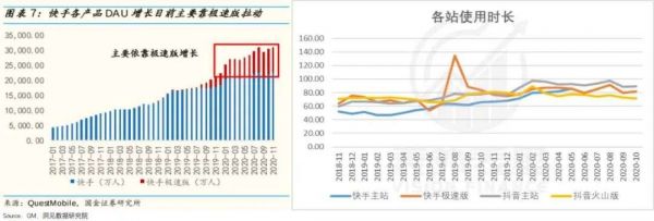 以快手为例,2019年8月快手极速版上线,就迅速成为快手产品的DAU增长的主要推手;与此同时,其用户使用时长也表现优秀,甚至比快手主站还高。
