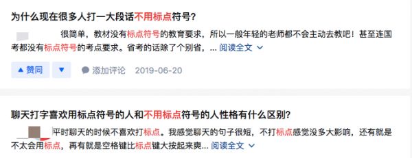 知乎关于省略标点符号的讨论。图片来源:知乎