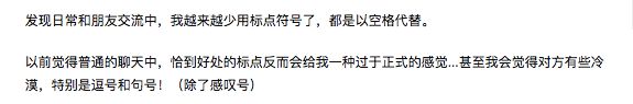于是,就回到了为什么会有越来越多人习惯省略标点符号这个问题。