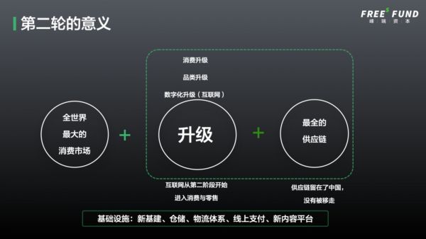 我们可以把这种模式简单称作“平台式上翻”。一边是供给不断升级,一边是消费者日趋成熟,中间是一个高效的连接平台。如果这时候恰好处于技术革新阶段,没有旧有模式的阻碍,在技术的“魔力”下,各种因素共同作用,将催生效率提升层面的极限。我们也可以称之为“第二轮机遇”,尤其是当中国的市场规模无比巨大时,带来的机会则更多,平台也更容易做大。
