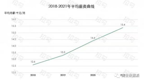 虽然整体趋势一路向好,但疫情之后,互联网行业薪资也受到一定影响,2020年成为近4年来唯一开年后薪资走低的年份:一季度拉勾平台发布的职位平均薪资为15700元;二季度降至14200元;三季度跌至低谷,平台薪资平均薪资仅为13900元,相比一季度降幅11.3%;四季度薪资回升至14400元。