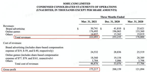 搜狐2021Q1财报