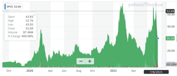 2019年10月,维珍银河借助Facebook前高管帕里哈皮蒂亚(Chamath Palihapitiya)的SPAC壳公司上市,成为首家也是唯一一家在纽交所上市的商业太空旅游公司。维珍银河自此点燃了公开市场的宇宙狂热。维珍银河股价在GameStop潮流中被一路带至新高,发射项目前再次被炒高。