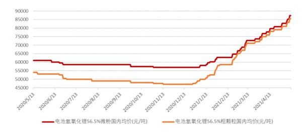 “电池级氢氧化锂现货均价为每吨89500元,较去年年底上涨了80%;碳酸锂材料价格已从去年年中的每吨3.8万元涨到了目前的9万元”,国轩高科相关负责人对中国汽车报表示。