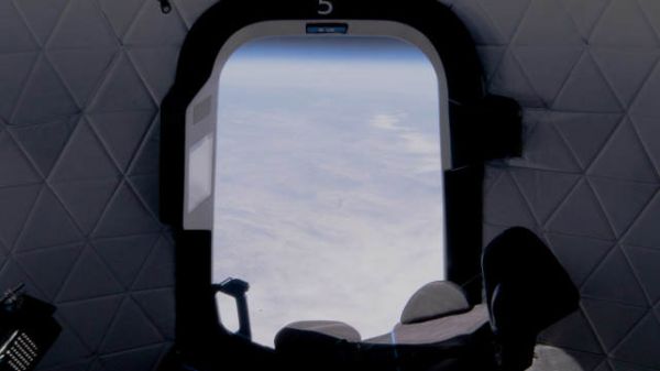 透过蓝色起源太空舱巨大舷窗所看到的景色