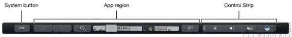 据悉,位于MacBook Pro键盘上方这条被命名为Touch Bar的OLED屏幕,其分辨率为2170x60。作为一个独立部件,Touch Bar有着128个像素宽的屏幕区域作为系统按键区、另外608个像素宽的屏幕作为控件条、中间1370个像素宽作为应用程序区域,并由一个单独的ARM处理器(T1芯片)驱动、运行的是watchOS的“魔改”版本。