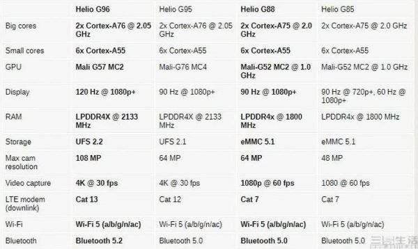 联发科Helio G系列规格对比(图片来自GSMArena)
