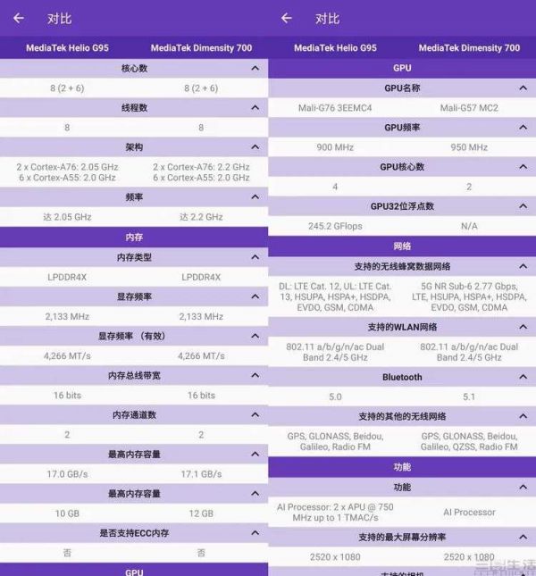 其中,Helio G96的CPU部分相比Helio G95并未升级,依然配备的是由两枚2.05GHz Cortex-A76与六枚Coretx-A55小核心组成的八核架构。不仅如此,相比于Helio G95搭载的Mali-G76MC4 GPU,Helio G96的GPU虽然架构进行了升级,但无论核心定位(Mali-G57)还是核心规格(MC2)都反而有所退步。