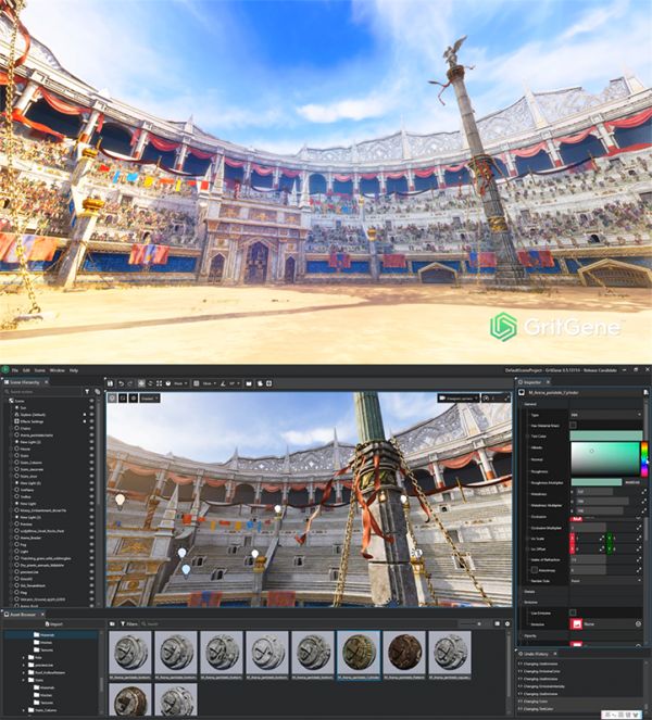 GritGene基于Vulkan运行,可以高效的发挥GPU的运算性能。支持光影追踪、动态照明和全局照明,特别在处理复杂透明材质的渲染上性能出众。此外GritGene引擎可以模拟真实的相机效果,支持景深和光晕的后期处理,能够渲染出CGI质量级别的图像。目前GritGene已完成内测,即将公开发布。