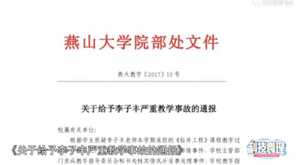 另外,我觉得学校管理不严的问题也是值得关注的。网上有一个《关于给予李子丰严重教学事故的通报》的文件,他曾经因为在课堂上宣传自己的民科理论被学校停止3年本科教学工作,说明学校对他的民科行为是有了解的。