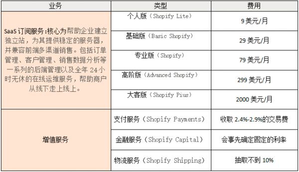 Shopify主要业务和收费模式: