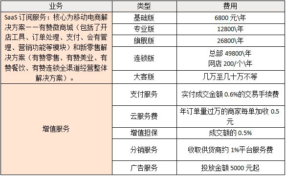 有赞主要业务和收费模式: