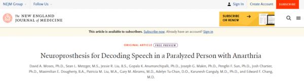 相关论文研究《Neuroprosthesis for Decoding Speech in a Paralyzed Person with Anarthria》发表在了《新英格兰医学杂志》上。