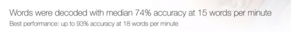 实验结果显示,这个脑机接口系统平均每分钟可以实时解码 15.2 个单词,平均准确率为 74%。并且,每分钟最多可以解码 18 个单词,准确率最高可以达到 93%。在事后分析中,研究者检测到受试者试图生成单个单词的概率为 98%,并且在 81 周的研究期间,他们使用稳定皮质信号分类单词的准确率达到了 47.1% 。