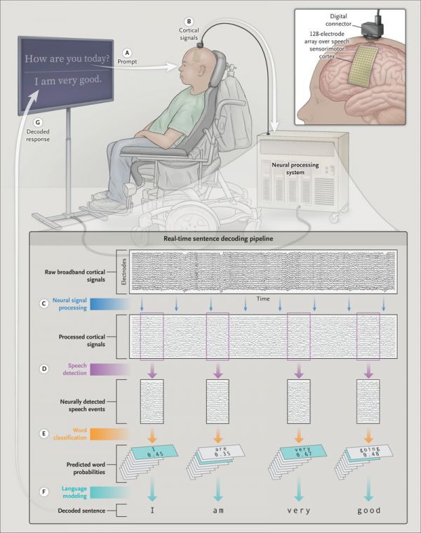 据了解,这是首次成功地从瘫痪失语患者言语皮质的大脑活动中直接解码完整句子。