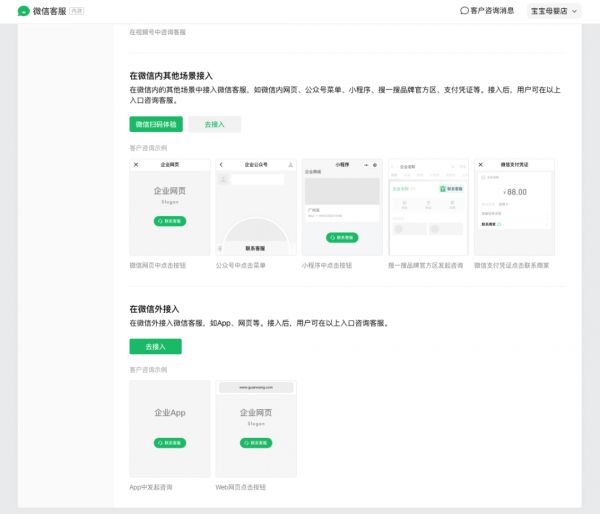 一个最直接的原因是微信月活已经达到了 12.4 亿,这意味着中国互联网用户大部分都在使用微信。更大的加持是,微信客服又不拘于微信生态,同时支持微信外部各种应用场景接入,比如企业官方 app、企业官网等等。品牌完全可以用它接入所有服务场景,为所有人提供服务,这是一个受众面足够广的入口。