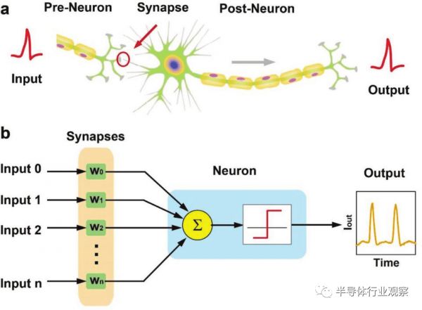 解决人工智能芯片功耗过大的一个思路就是比起主流的人工神经网络更进一步地模仿生物神经元的工作方式,而这样的方法也被称为“神经拟态”(neuromorphic)。动物的神经元会不断地从其他神经元突触接受电脉冲并累积电荷,当电荷高过某个阈值时,神经元就会通过突触脉冲放电,而该电脉冲将通过突触传递到下一个神经元。在这个过程中,神经元仅仅在放电(也即活动)的时候会有能量消耗,而在其他时候都处于非常低功耗的状态。