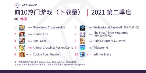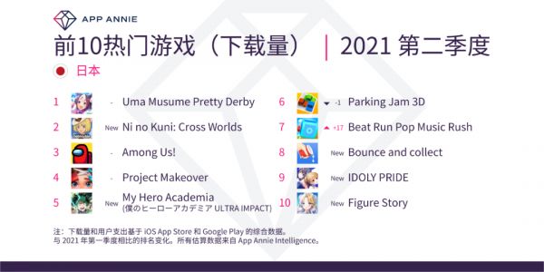 上个季度亚太地区最引人注目的游戏产品无疑是《二之国:交错世界》。它在日本和韩国的突破榜单中名列前茅。《二之国》是一款吉卜力风格的角色扮演游戏,于 2010年年首次登陆任天堂 DS,并于 6 月推出。