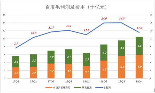 收结构变迁造成毛利润率的波动。2018年Q3毛利润140亿,毛利润率50%;Q4毛利润116亿,毛利润率42.6%。