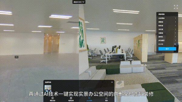 在最新上线的AI办公室装修设计环节,亦我科技升级了AI学习功能,实现了办公空间的智能布局、实时渲染,让办公空间的VR装修效果即时可见。支持自助定义工位、高管室、会议室、茶水间,前台等数量参数,实现AI布局与自助DIY的双重办公室装修体验。