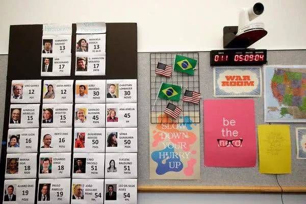 巴西候选人的照片放在Facebook的“作战室”,员工在那里监控与巴西选举相关的内容。
