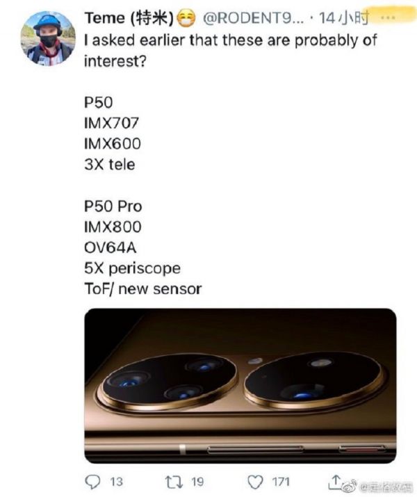 根据@数码闲聊站的爆料,华为P50的主摄将是全新定制的IMX707,从命名规则上看,相比P40 Pro上的IMX700,应该只有小幅提升。副摄部分搭载的是IMX 600,也就是P30 Pro的主摄,另外还会配备一颗3倍潜望长焦镜头。