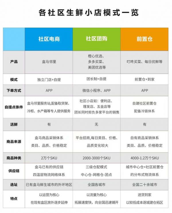 市面上现存的各类社区零售业态,图片来自盒马官方
