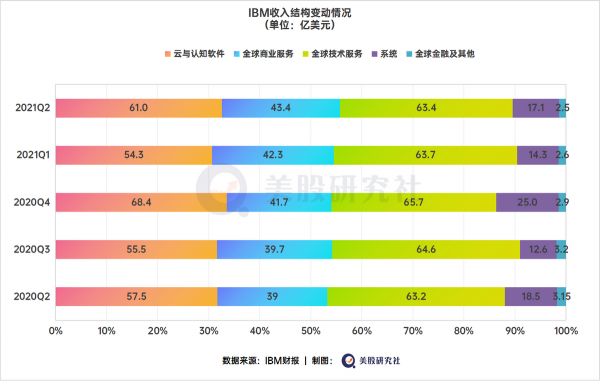 在收入构成上,IBM的Q2成绩还是可圈可点的,主要是云业务带来的增长明显,为主力版块实现了赋能式增长。具体来看: