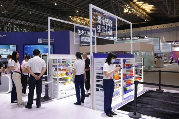 交通银行、工商银行、建设银行皆在展厅中设立数字人民币展区,展示数字人民币硬钱包的多样形态。《IT时报》记者发现,除去展区内设置的商户场景,诸如自助贩卖机及周边商超的各大银行指定商户,数字人民币同样可作为支付手段。