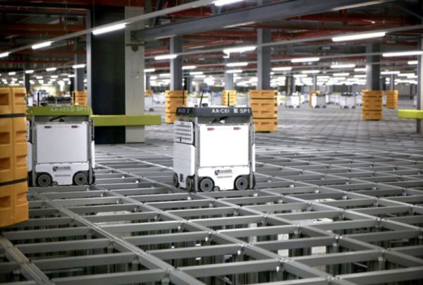 Ocado公司的仓库里塞满了约3000台洗衣机大小的机器人,它们在一个网格系统中以每秒4米的速度移动处理产品订单,Ocado将这套系统称为“Hive”,机器人负责托运一箱箱的货物,然后把它们转运到正确的位置,让人类来处理客户订单。
