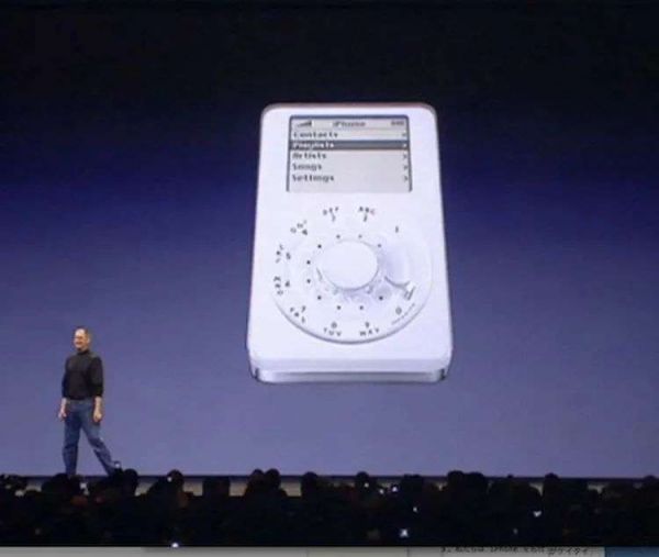 2007年1月9日当乔布斯站在发布会的舞台上首次介绍iPhone时,他为了给iPhone独特的外观及操控方式“埋包袱”,故意将这款新品说成是“iPod与电话的结合体”,并且还展示了一张基于这种构想的产品图。