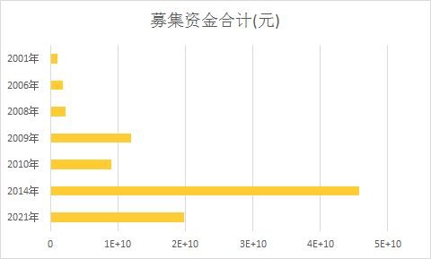 与20年如一日的股价表现形成对比的,是京东方的融资能力。上市以来,京东方凭借IPO募资和定增融资,20年里前前后后从资本市场拿走了近千亿资金,堪称A股第一能打的融资机器。