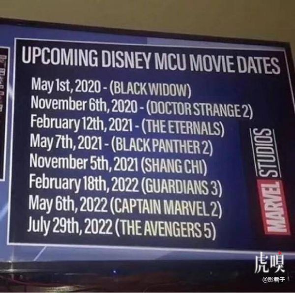 一张标注有迪士尼漫威电影宇宙未来几部电影档期的图片在 twitter 上流出,其中惊现漫威至今都未曾官方提及《复联5》,档期标注为2022年7月29日。但这张图应该是粉丝参考漫威刚刚公布的8个“未定名漫威”(untitled Marvel)电影的档期自制的图片。