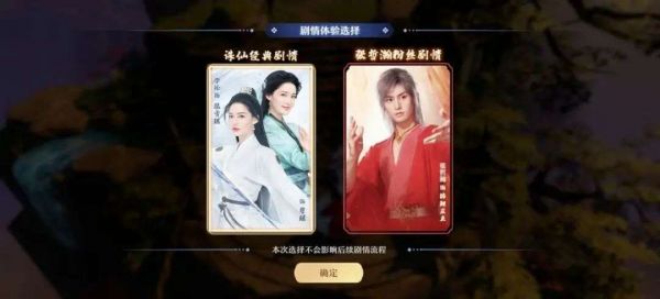 当玩家注册完账号,正式进入新上线的《梦幻新诛仙》的世界后,游戏内会跳出一个“不怎么游戏”的剧情体验选择界面:左侧是“诛仙经典剧情”,右侧却是“张哲瀚粉丝剧情”。左侧选项的配图,也用了另一代言人李沁的cos形象。
