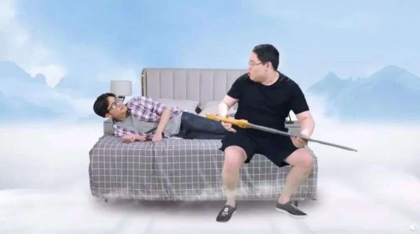 (3)游戏圈KOL代言,对象包括PDD、芜湖大司马、周淑怡、一条小团团等数位风格迥异的斗鱼系大主播。与前者不同,游戏KOL的买量素材形式极其多样:口播念稿,各种直播切片,还有风格不同的情景短剧,例如大司马御剑飞行至PDD床上这种搞怪内容。