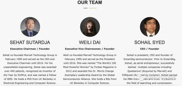 他们所成立的公司名字叫【DreamBigSemi】,成立于2019年,从这个名字就可以看出他们的“梦想很大”。DreamBigSemi主要是为数据中心和存储加速提供全面的低成本、低延迟和高吞吐量SmartNIC解决方案。而且Dream Big Semiconductor 团队在颠覆性技术方面拥有无与伦比的良好记录。其中周秀文任执行主席,戴伟立任执行副主席,除了我们所熟知的这两位之外,SOHAIL SYED任CEO。SOHAIL SYED也是一个了不起的人物,Sohail 是一个很强的创业者,成功创办了包括 Questarium(被 Marvell 收购)和 FIRQuest(被 Corigine 收购)在内的多家公司。
